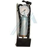 Pedalfüllpumpe mit Manometer bis 10 bar. Es enthält mehrere Düsen für alle Arten von Rädern, Kugeln usw.