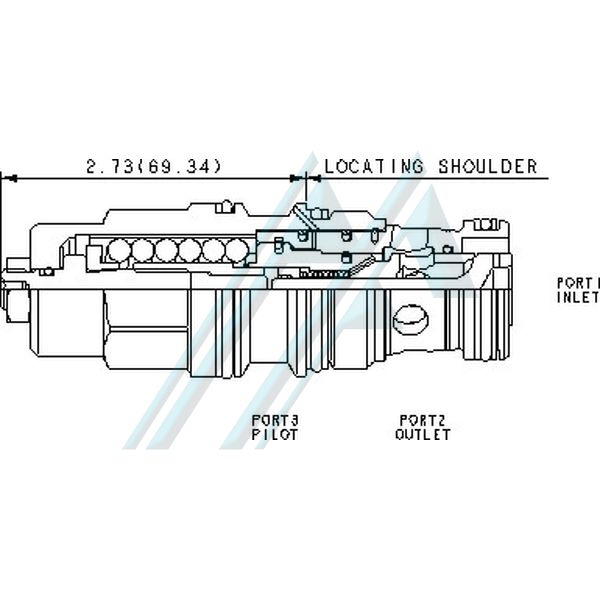The check valve allows free flow from the directional valve (2) pressure (1) while a discharge valve direct piloted controls the flow rate of 1 to 2. The display (3) lower the effective adaptation of the discharge valve to a value determined by the ratio of riding. The backpressure in 2 does not affect the valve setting because the spring has an atmospheric reference.