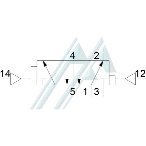Tamaño ISO 3. Válvula de 5/2 vias accionada con doble pilotaje neumático y posición de reposo.