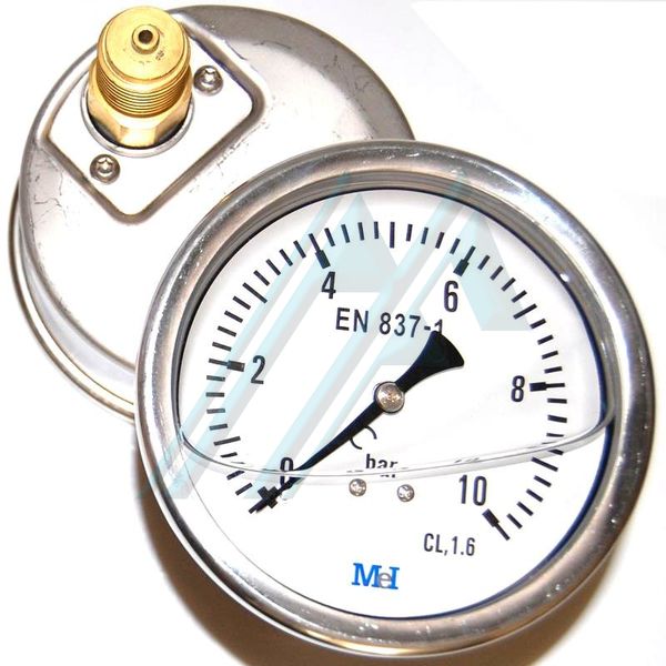 Manómetro de glicerina Ø 100 mm. 0-10 bar. Salida posterior