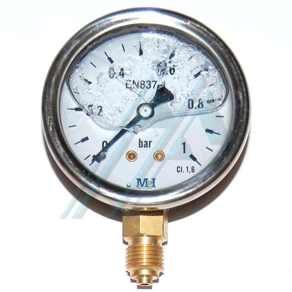 Manómetro de glicerina Ø 63 mm. 0-1 bar. Salida vertical