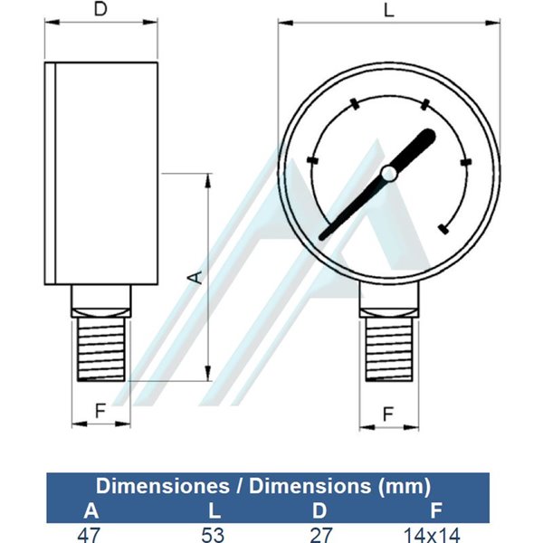 Graduaciones disponibles de 0 a 2,5 - 4 - 6 - 10 - 16 - 25 bar.
