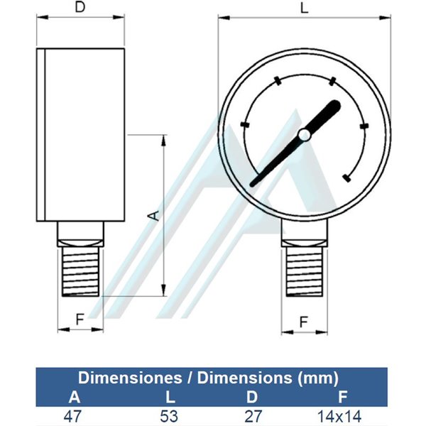 Graduaciones disponibles de 0 a 2,5 - 4 - 6 - 10 - 16 - 25 bar.