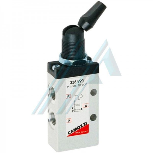- Vanne pneumatique à commande manuelle. - 3/2 voies normalement fermées. - Raccordement femelle fileté 1/8" BSP. - Interrupteur manuel bistable. - Pression de service 0,9 à 10 bar. - Force d'actionnement 18 N. - Débit 700 Nl/min.