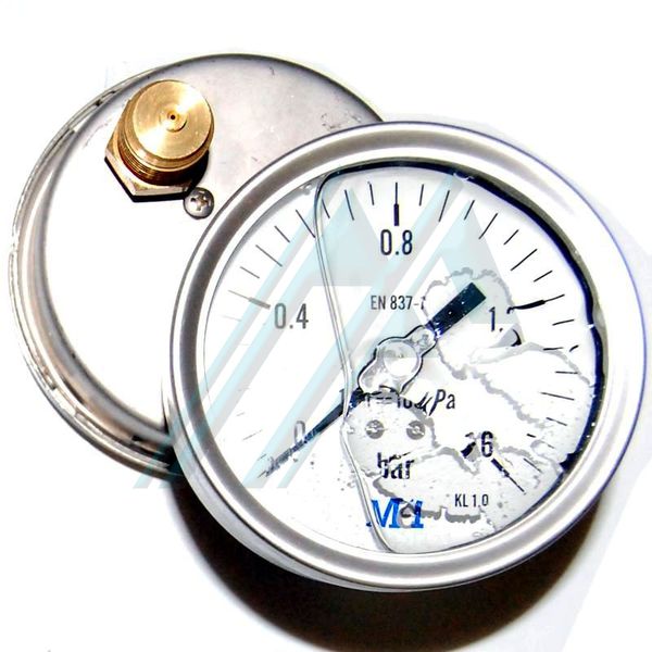 Manomètre ø 100 avec de la glycérine 0-1.6 kg de sortie arrière