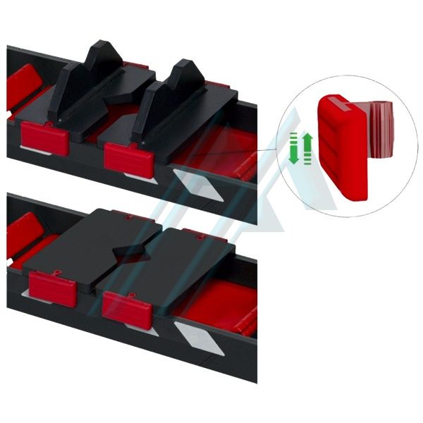 Inclure les 2 accolades dans un "V" avec un guide de fixation et le trou d'extraction.