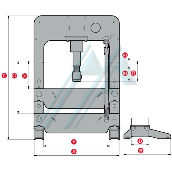 CAPACITÉ (La TONNE.) | Pour | B | C | D | Et | G1 MIN. | G2 MAX. | R1 TOUR | R2 TOUR BROCHE | M TOUR TOTAL | RÉFÉRENCE |