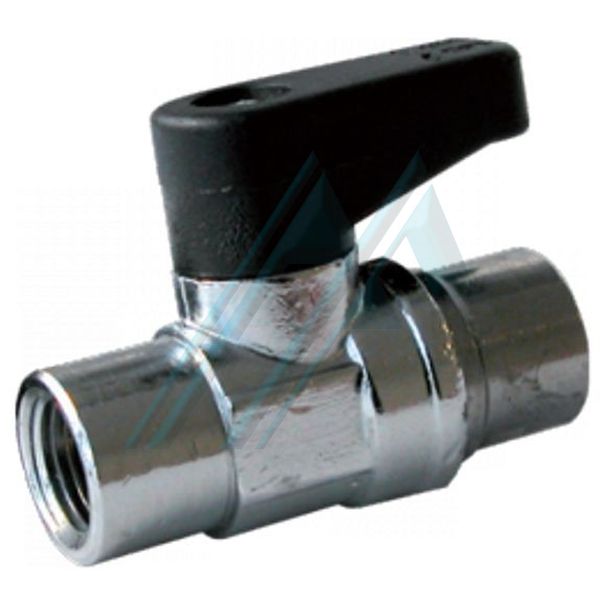 Vanne miniature avec joint NBR. Pression nominale de 20 bar. Corps en laiton / bronze. Boule chromée. Sièges en téflon. Manche en résine acétal noire.