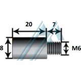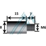 - Convertitore per molla a gas. - Filettatura femmina M6 a maschio M8 - Lunghezza 10mm. - Materiale metallico.