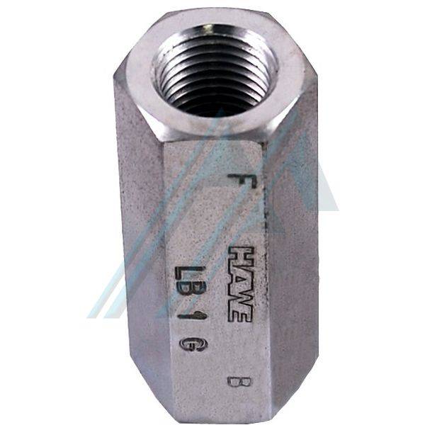 Al gruppo delle valvole di blocco appartengono le valvole a paracadute, chiamate anche valvole a tubo anti-rottura. le valvole sono normalmente montate direttamente sul cilindro in linea. Impediscono il movimento incontrollato del cilindro in caso di rottura di un tubo o di distacco di un tubo flessibile. La valvola di scoppio del tubo di tipo LB offre una grande sicurezza contro i picchi di pressione. Si distingue per la sua chiusura sicura che si ripete con precisione con il flusso di risposta precedentemente regolato. Portate maggiori fanno sì che le forze del flusso premano una piastra sollevata dalla sede della valvola mediante la forza della molla contro la sede dell'alloggiamento. La valvola si chiude. Una variante con un orifizio del getto nella piastra della valvola consente un flusso basso nella direzione di blocco. Il tipo LB è disponibile come valvola a vite o in versione scatola per il montaggio sulla tubazione.