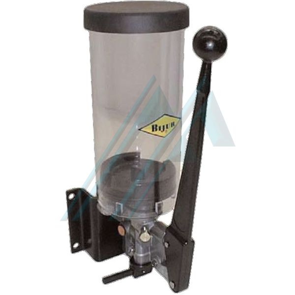 La pompa manuale è perfettamente adattato per l'uso con divisori-progressive. Il lubrificante viene introdotto nel circuito con la maniglia che è collegato ad un pistone di una singola azione. Una valvola di scarico integrata offre la possibilità di utilizzo con olio ugelli volumetrica (PDI). Per il grasso, un foro di riempimento si trova sul fondo del corpo della pompa. Il serbatoio è dotato anche di un piatto di follow-up.