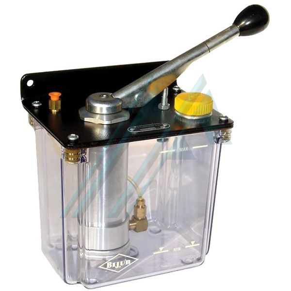 La pompa viene azionata manualmente e funziona come un accumulatore. Premendo la leva si comprime una molla di riempimento di un cilindro con una quantità di olio per impostazione predefinita. Quando si rilascia la leva, un pistoncino spinto dalla molla di circolazione dell'olio nei condotti. L'olio di volume è misurato accuratamente indipendentemente dalla viscosità.