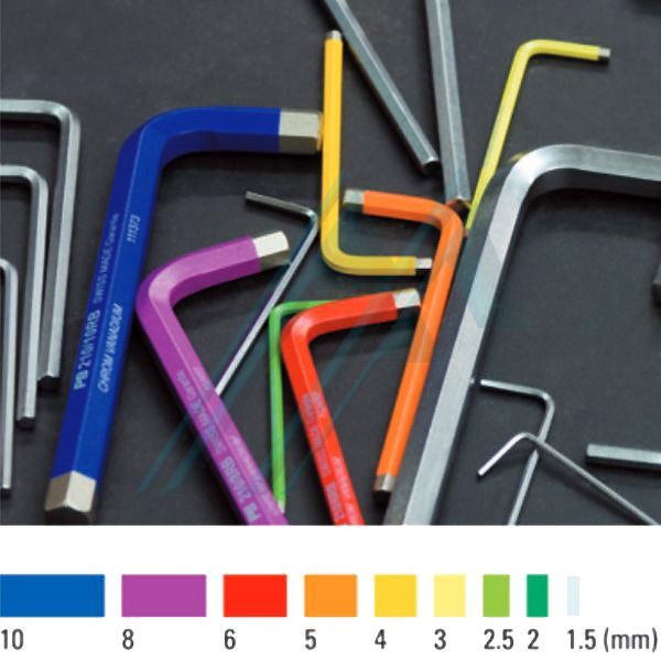 Chiave esagonale set angolato sferica lunga serie e la codifica dei formati di colore.