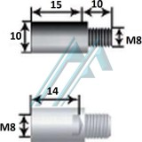 -ガススプリングの固定。 -ボールジョイントタイプの固定Ø10。 -長さ18mm。 -プラスチック素材。 -M-8めねじ。