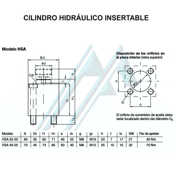 | HSA4025 | 40 | 25 | Oリング44x5 NBR 90 Sh | 4.5 | 1 | 2.5 | |