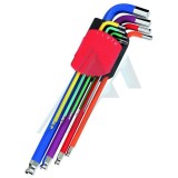 Jogo de chaves hexagonais mergulhadas esférica série longa e codificação de tamanhos, cores.