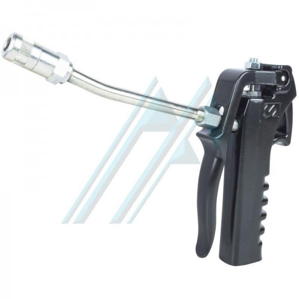 - Cabo ergonômico antiderrapante com gatilho de regulagem de vazão, permitindo controle preciso da quantidade de graxa aplicada no ponto de lubrificação.