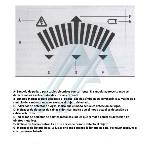 O KC-098-E tem a função de alarme para cabos elétricos com corrente. Quando detecta um fio com corrente, o dispositivo avisa com um símbolo na parte superior esquerda da tela e acende e não afetará a detecção de vigas ou metais.