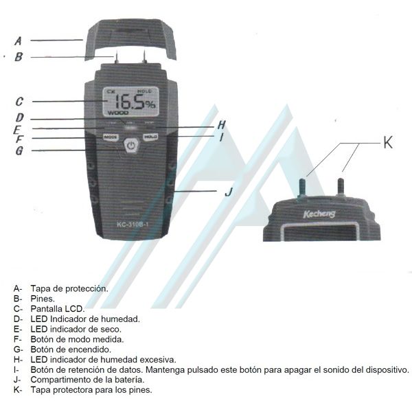 O medidor de umidade em paredes e madeira, que mede a umidade do material alvo detectando a resistividade elétrica usando dois pinos. O aparelho possui um chip de baixo consumo de design inteligente e o nível de umidade é mostrado em uma tela de LCD. Além disso tem a vantagem de ser compacto, fácil de usar, realiza as medições de forma rápida, o que é indicado para levá-lo ao campo de trabalho.