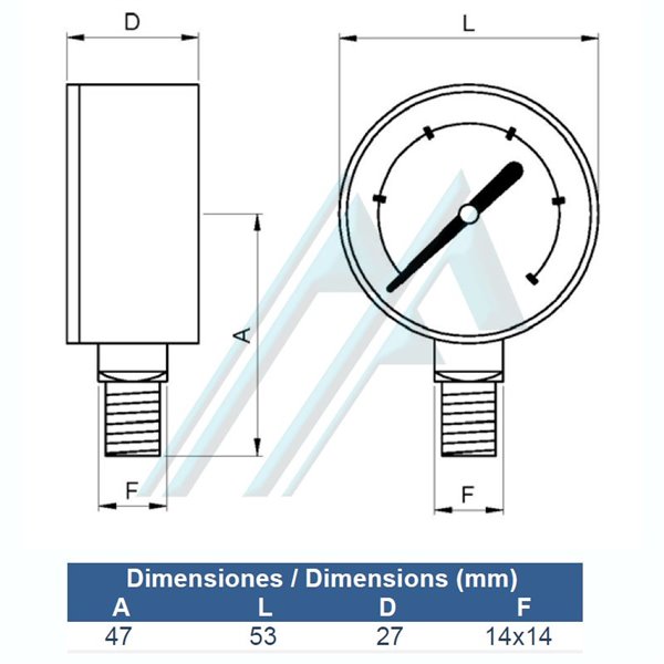 Graduações disponíveis de 0 a 2,5 - 4 - 6 - 10 - 16 - 25 bar.