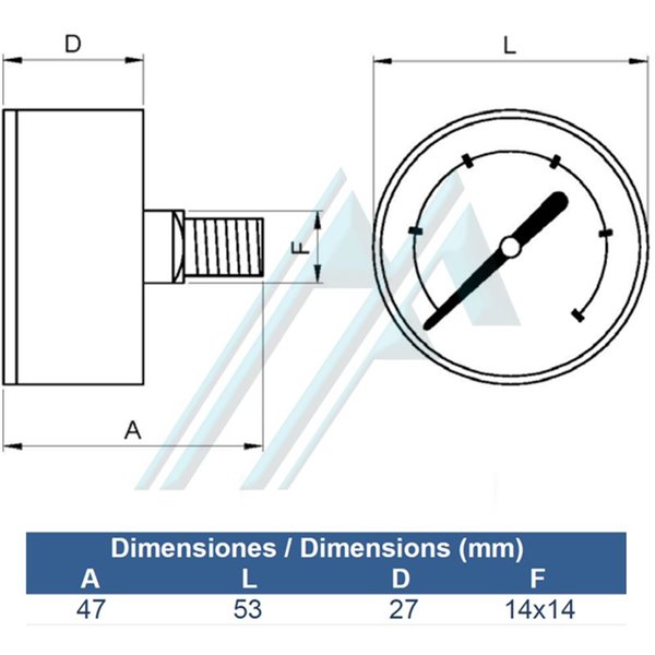 Graduações disponíveis de 0 a 2,5 - 4 - 6 - 10 - 16 - 25 bar.