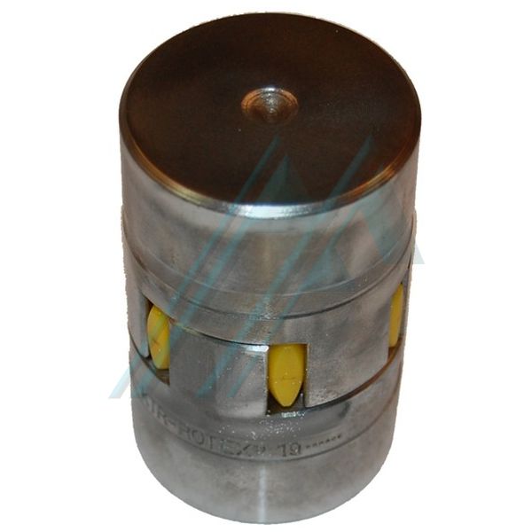 - Ao contrário de outros acoplamentos flexíveis nos quais os membros intermediários suportam tensões de flexão e estão mais sujeitos ao desgaste prematuro, apenas os dentes flexíveis dos acoplamentos ROTEX © estão sujeitos a esta pressão. Isso oferece a vantagem adicional de que cada dente tolera cargas mais altas. O elastômero se deforma sob carga e velocidade excessivas. Deve-se deixar espaço suficiente para a dilatação (veja o desenho à direita).