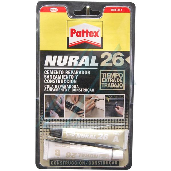 Клей Pattex Nural 26, ремонт и заливка навсегда. После затвердевания его можно шлифовать, полировать, обрабатывать, сверлить и красить. Он подходит для приложений, требующих дополнительного рабочего времени.