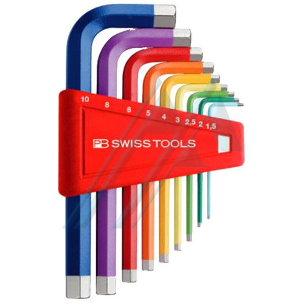 Комплект шестигранных ключей с полкой и кодировка размеров по цвету.