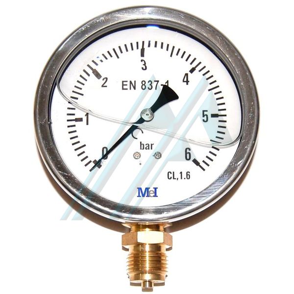 压力计甘油直径100毫米的0-6个酒吧。 输出垂直